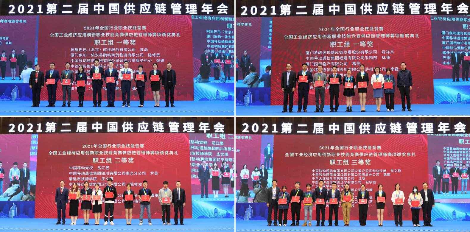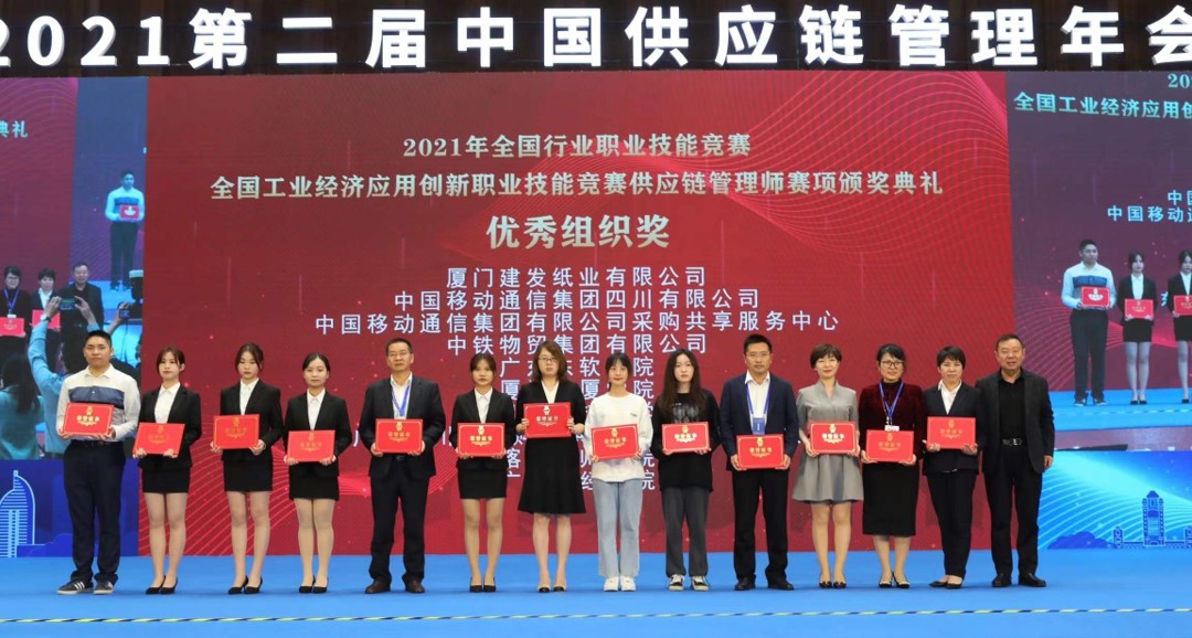 厦门建发纸业有限公司、中国移动通信集团四川有限公司、中国移动通信集团有限公司采购共享服务中心、中铁物贸集团有限公司、广东东软学院、厦门华厦学院、深圳鹏城技师学院、广东省川流采购与供应链职业培训学校、喀什技师学院、广西财经学院等十家单位获得最佳组织奖。