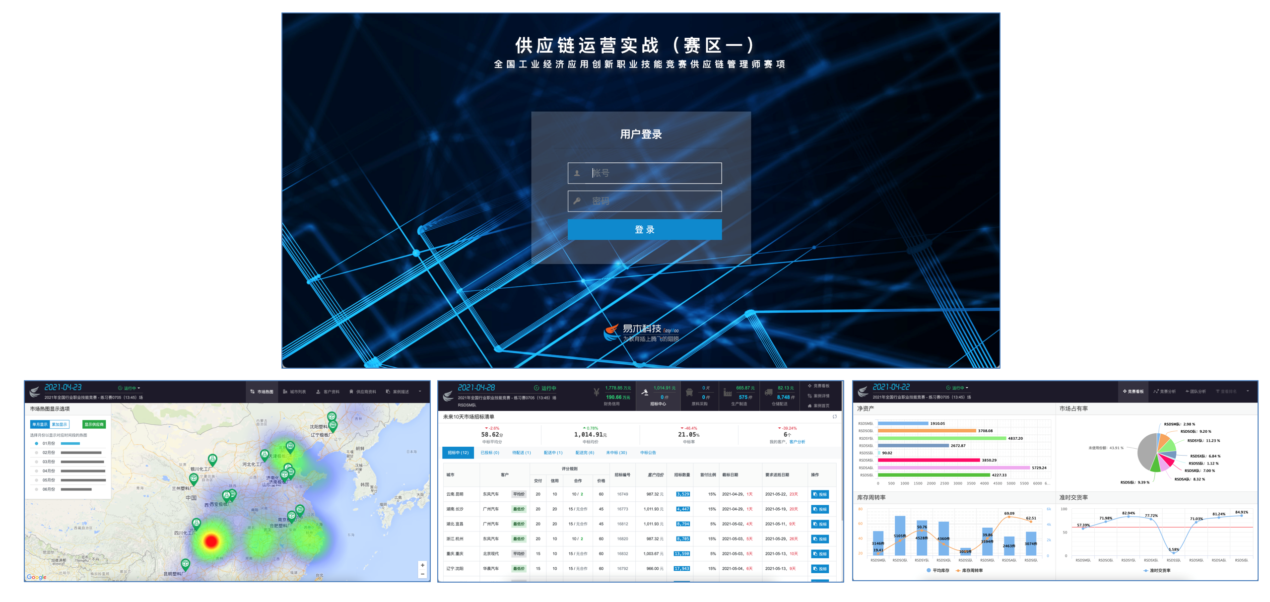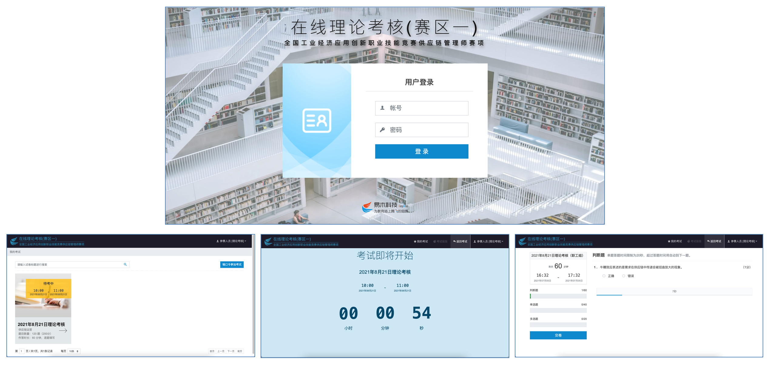 易木科技作为64体育的技术支持单位,为本次供应链管理师赛项的“供应链运营实战”和“线上理论考核”分别提供了相应的系统,以过硬的技术实力和稳定高效的服务响应,有力保障了竞赛的顺利进行!