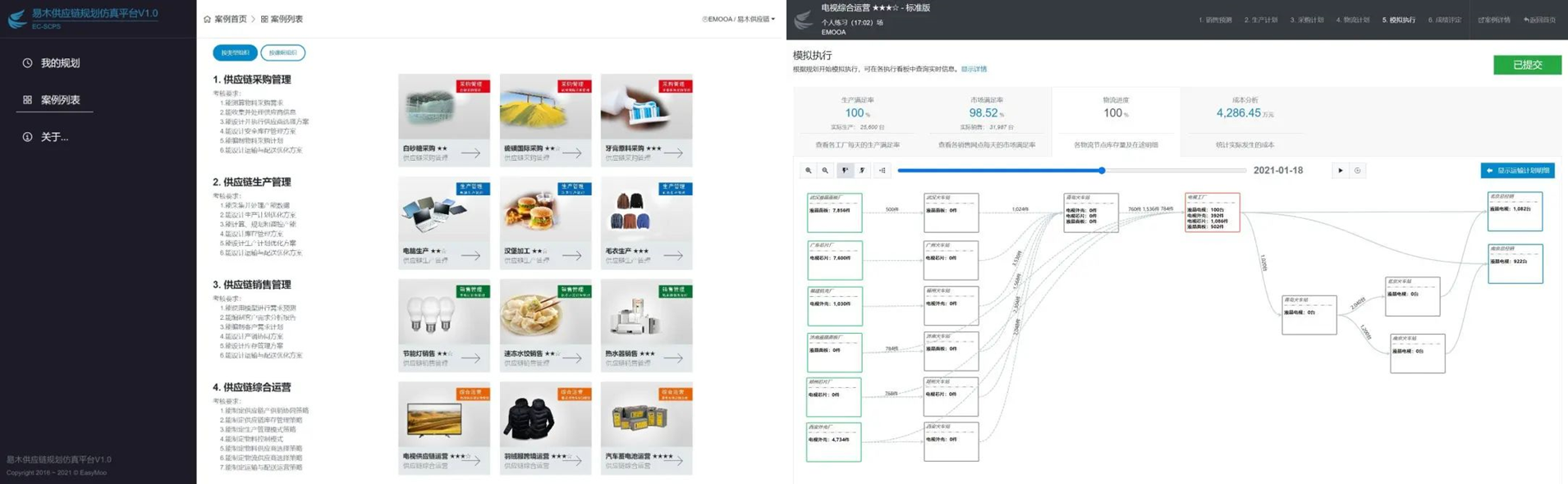 易木科技为本届大赛的“供应链运营实战”、“供应链规划实战”两个赛项分别提供了“供应链时代实战平台”、“供应链规划仿真平台”两套系统。